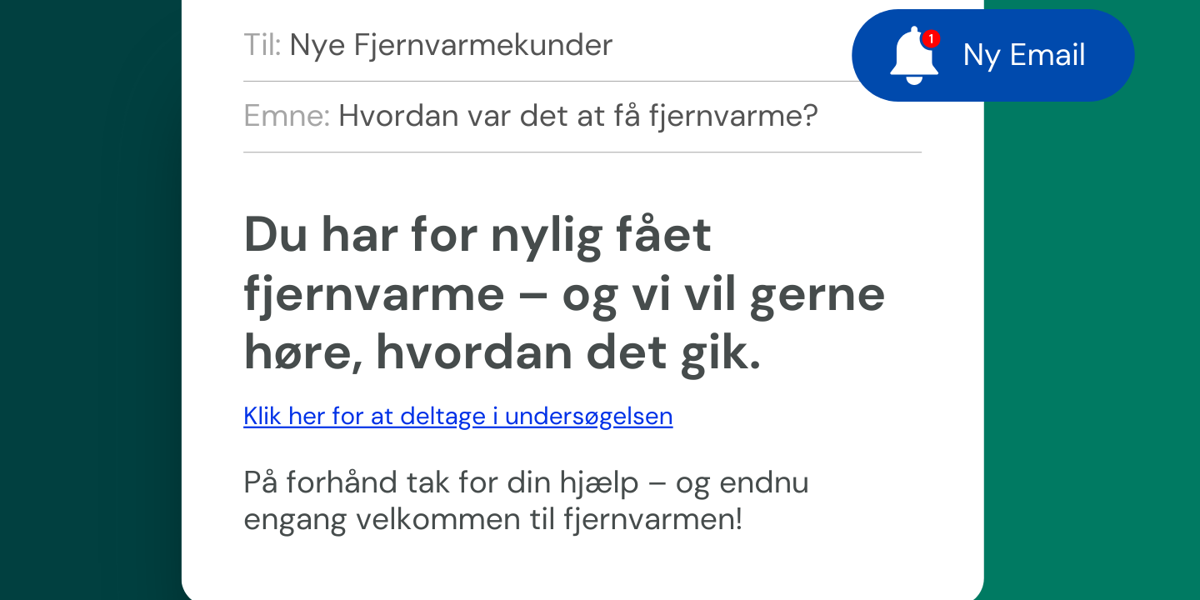 Vi har sendt e-mails ud til nye fjernvarmekunder med en invitation til at deltage i en tilfredshedsundersøgelse.