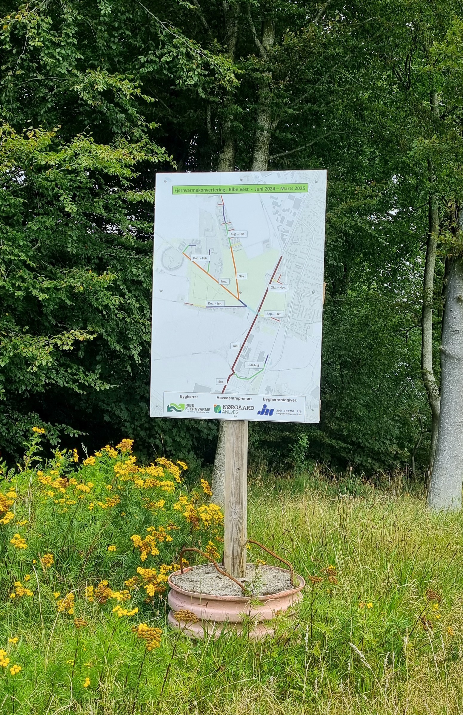 Vi er i fuld gang med at grave ud til fjernvarmen i Ribe Vest – og allerede i efteråret kobler vi de første kunder på. Vi forventer at tilslutte de sidste kunder inden sommeren 2025.